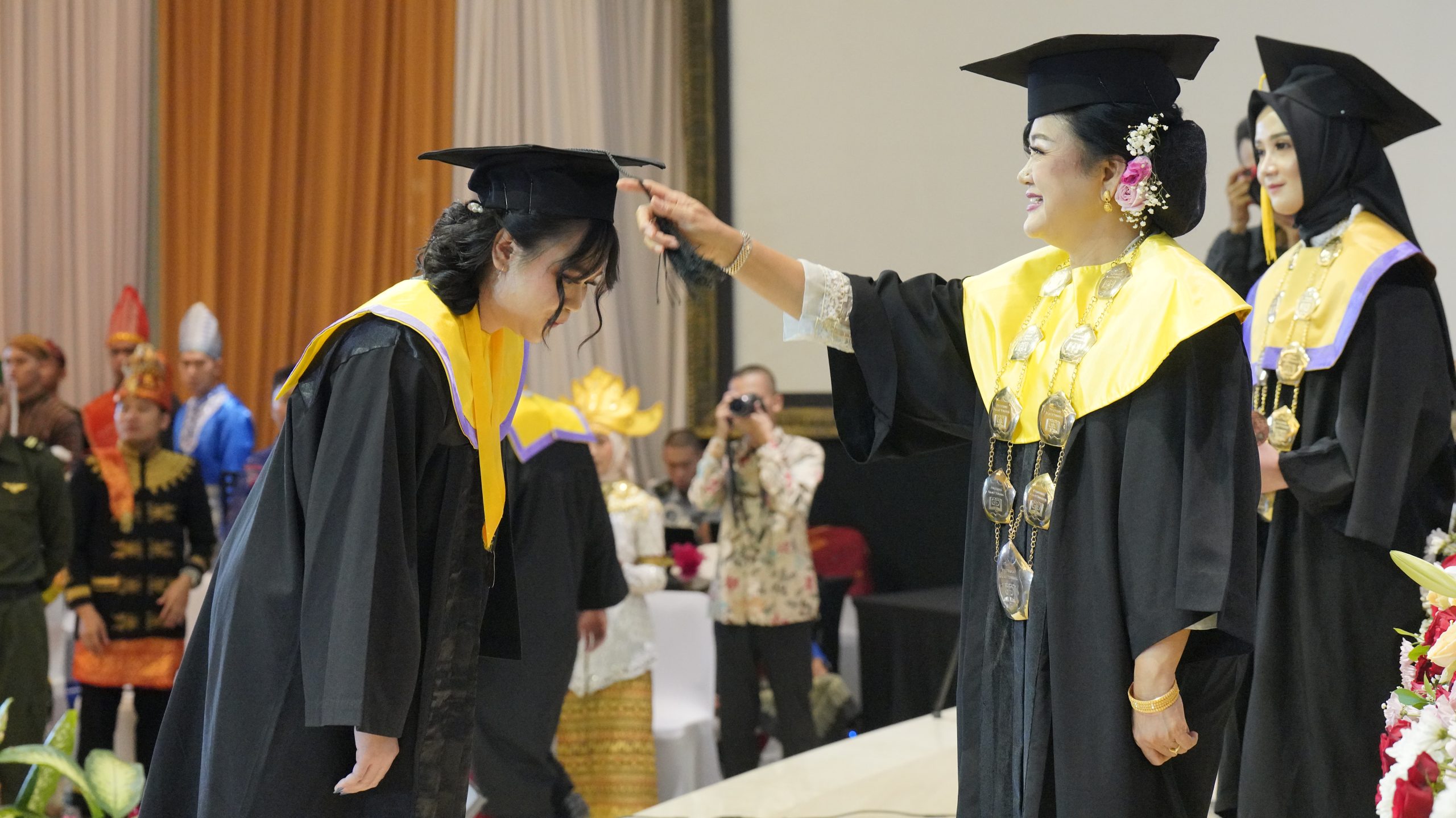 Suasana semakin hangat ketika prosesi pengunciran dilakukan kepada wisudawan. Para wisudawan tampak bangga dan haru saat menerima apresiasi atas kerja keras dan dedikasi yang telah mereka jalani selama masa studi. Tak ketinggalan, penghargaan khusus diberikan kepada wisudawan berprestasi sebagai bentuk apresiasi atas pencapaian akademik maupun non-akademik.